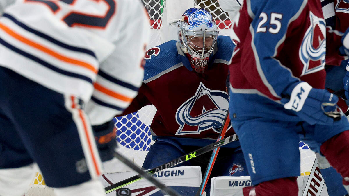 DENVER, COLORADO - JUNE 02: Pavel Francouz #39 of the Colorado Avalanche makes a save against the Edmonton Oilers during the second period in Game Two of the Western Conference Final of the 2022 Stanley Cup Playoffs at Ball Arena on June 02, 2022 in Denver, Colorado. (Photo by Harry How/Getty Images)