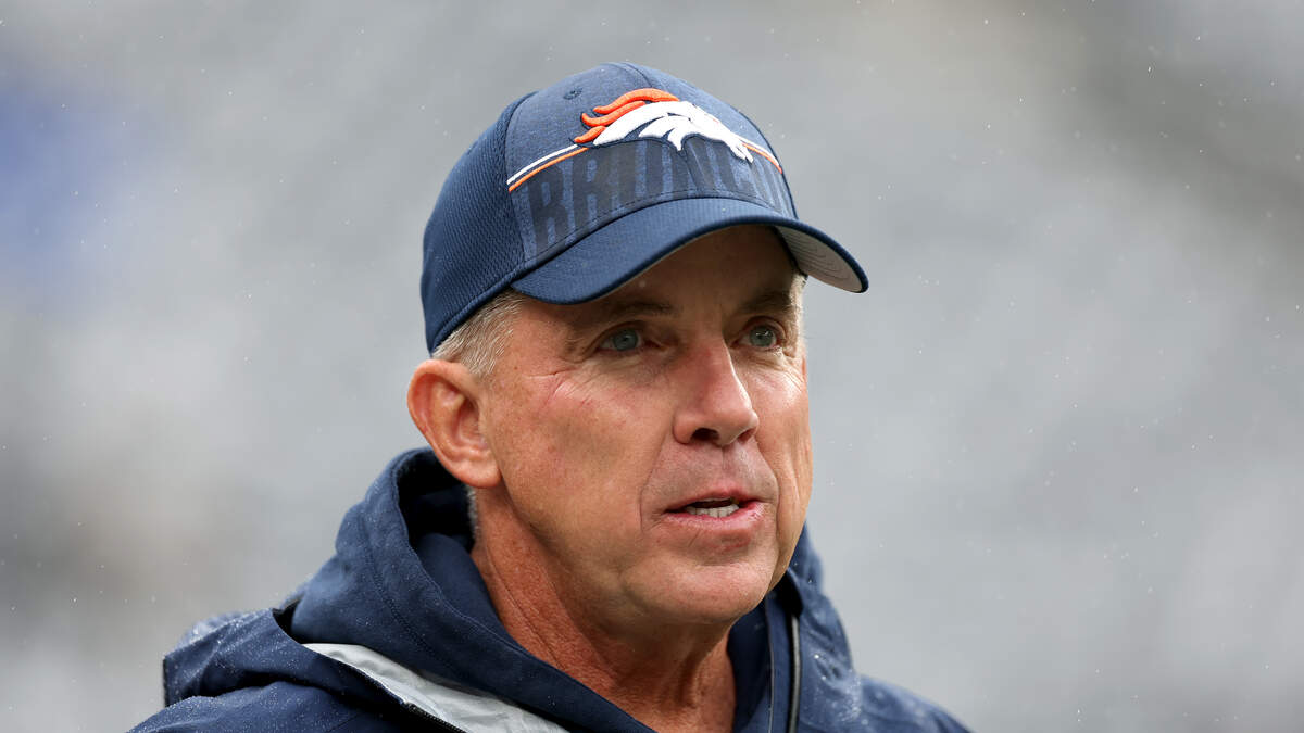 EAST RUTHERFORD, NEW JERSEY - SEPTEMBER 29: Head coach Sean Payton of the Denver Broncos looks on before a game against the New York Jets at MetLife Stadium on September 29, 2024 in East Rutherford, New Jersey. (Photo by Luke Hales/Getty Images)
