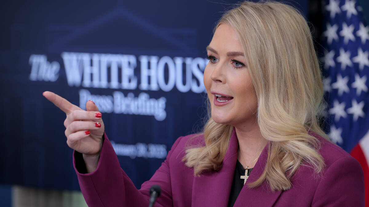 WASHINGTON, DC - JANUARY 28: White House Press Secretary Karoline Leavitt holds her first news conference in the Brady Press Briefing Room at the White House on January 28, 2025 in Washington, DC. At 27-years-old, Leavitt is the youngest White House press secretary in U.S. history. (Photo by Chip Somodevilla/Getty Images)