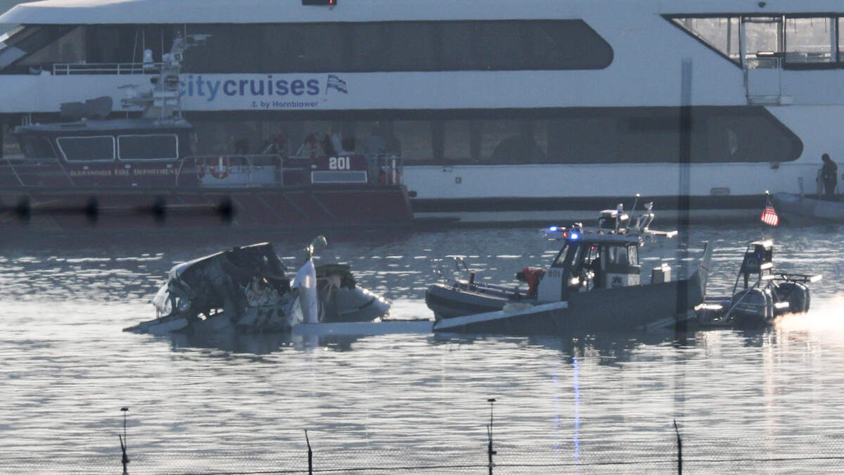 ARLINGTON, VIRGINIA - JANUARY 30: Emergency response units search the crash site of the American Airlines plane on the Potomac River after the plane crashed on approach to Reagan National Airport on January 30, 2025 in Arlington, Virginia. The American Airlines flight from Wichita, Kansas collided in midair with a military helicopter while approaching Ronald Reagan National Airport. According to reports there were no survivors amongst the 67 people on board both aircraft. (Photo by Win McNamee/Getty Images)