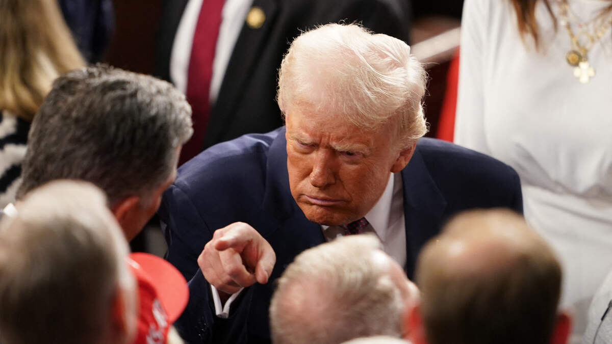TOPSHOT - US President Donald Trump departs after addressing a joint session of Congress at the US Capitol in Washington, DC, on March 4, 2025. (Photo by ALLISON ROBBERT / AFP) (Photo by ALLISON ROBBERT/AFP via Getty Images)