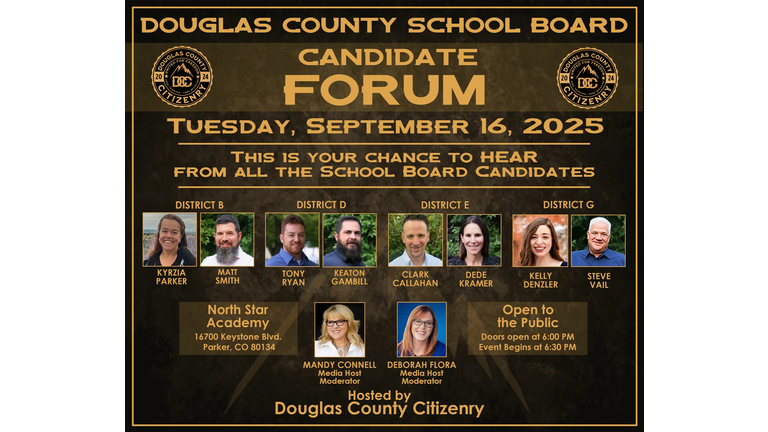 WANT TO SEE POLITICS DONE CIVILLY? There is a forum where all the Douglas County School Board candidates will be appearing, moderated by me and my friend and show partner Deborah Flora (click here for more on that show). It's part of Douglas County Citizenry's effort to elevate the dialogue and bring back those days where people could express differing viewpoints in a constructive way. Details are below, but I can already tell you that if you are a bad actor wanting to do harm probably half the people there will be skilled carry concealed folks. Just saying.