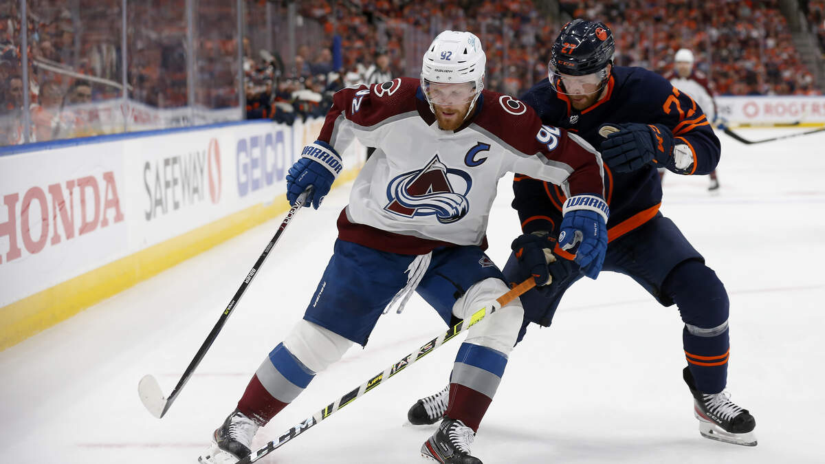 Colorado Avalanche forward Gabriel Landeskog (92) battles Brett Kulak of the Edmonton Oilers for the puck in the Avs 4-2 win in game three of the Western Conference Final at Rogers Place on Saturday, June 4. (Photo: Codie McLachlan/Getty Images)Photo: Getty Images