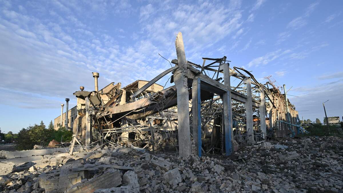 A picture taken on June 5, 2022, shows a destroyed depot of the Darnytsia freight cars repair plant, which was targeted early morning by Russian missile strikes in Kyiv. - A plant for repairing freight cars was targeted by airstrikes in the southeast of Kyiv, 10 kilometers from the city center, with Russia claiming to have destroyed armored vehicles supplied to Ukraine by neighboring Eastern European countries. "This is another example of falsification fabricated by Russia to justify this brutal war against Ukraine", reacted to AFP Serhii Leshchenko, the deputy director of the supervisory board of the Ukrainian railway company. (Photo by Genya SAVILOV / AFP) (Photo by GENYA SAVILOV/AFP via Getty Images)Photo: Getty Images