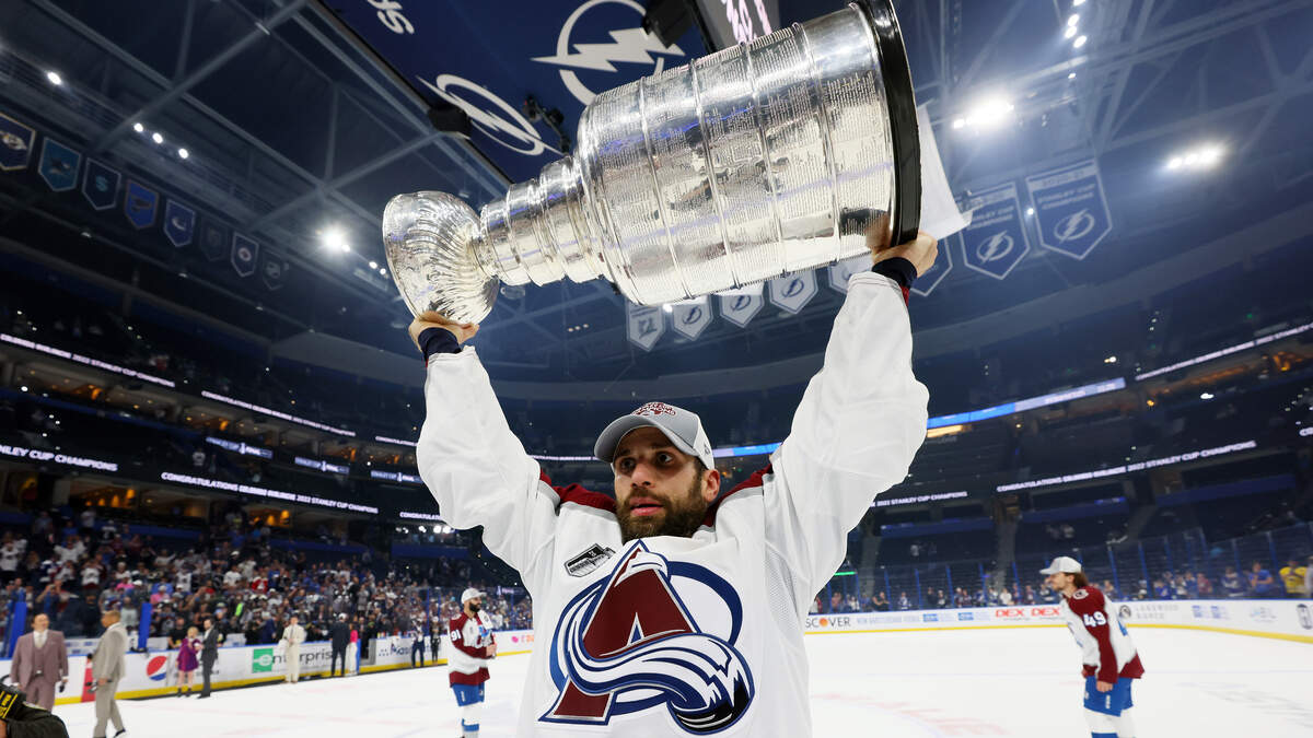 Colorado Avalanche forward lifts the Stanley Cup after the Avs defeated the Tampa Bay Lightning, 2-1, in the series-clinching game six of the Stanley Cup Final on June 26, 2022. (Photo: Bruce Bennett/Getty Images)Photo: Getty Images