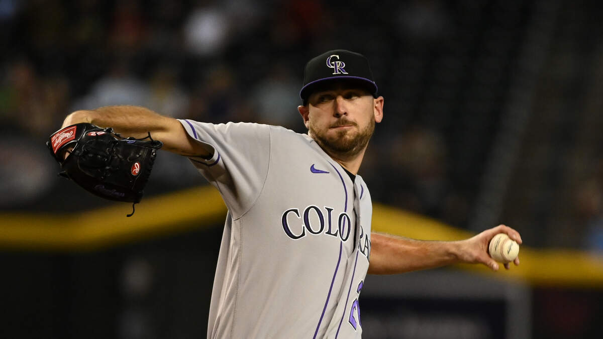 PHOENIX, ARIZONA - JULY 07: Austin Gomber #26 of the Colorado Rockies delivers a first inning pitch against the Arizona Diamondbacks at Chase Field on July 07, 2022 in Phoenix, Arizona. (Photo by Norm Hall/Getty Images)Photo: Getty Images