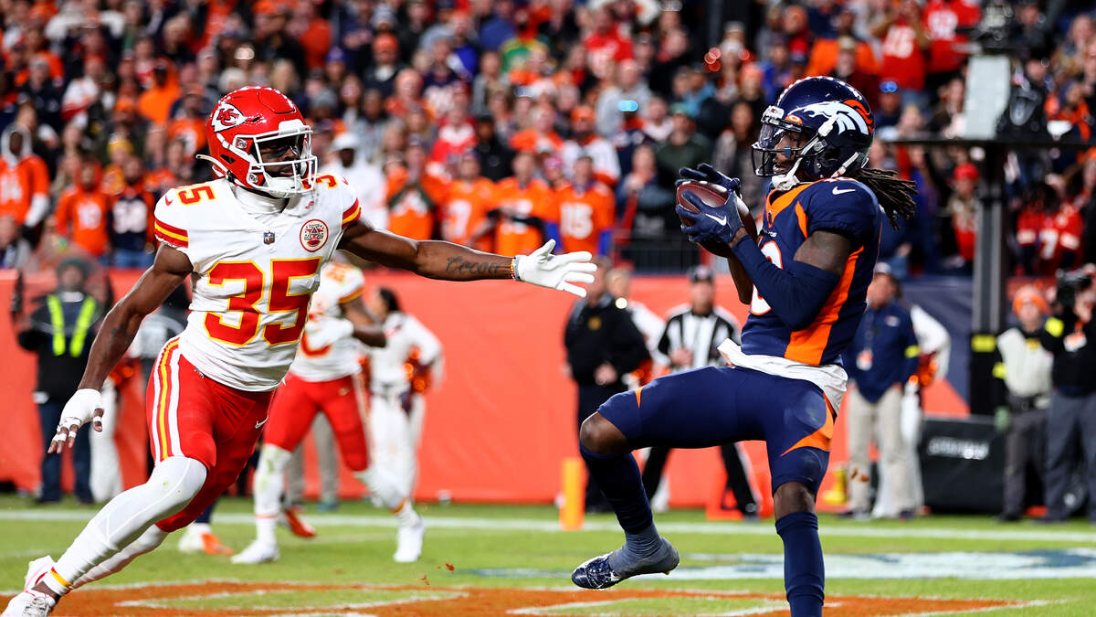 Cornerback Pat Surtain then intercepted Mahomes and the Broncos had the ball back at their 40. This time, they needed seven plays to score. Wilson found Jeudy from five yards out and the Broncos were within 27-14 with nine seconds left before halftime.