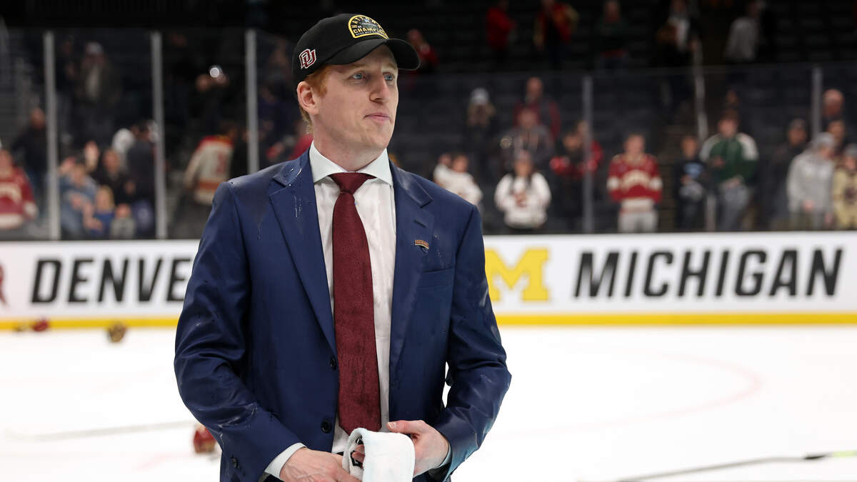 BOSTON, MASSACHUSETTS - APRIL 09: Denver Pioneers Head Coach David Carle looks on after the Pioneers defeat the Minnesota State Mavericks 5-1 in the 2022 NCAA Division I Man's Ice Hockey Championship game at TD Garden on April 09, 2022 in Boston, Massachusetts. (Photo by Maddie Meyer/Getty Images)Photo: Getty Images