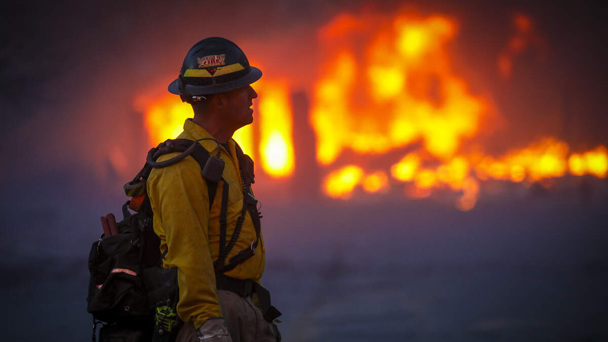 LOUISVILLE, CO - DECEMBER 30: A Mountain View wildland firefighter walks through the smoke and haze after a fast moving wildfire swept through the area in the Centennial Heights neighborhood of Louisville, Colorado on December 30, 2021. State officials estimated some 600 homes had already been lost in multiple areas around Boulder County and were fueled by winds that gusted upwards of 100 miles per hour at times during the day. (Photo by Marc Piscotty/Getty Images)Photo: Getty Images