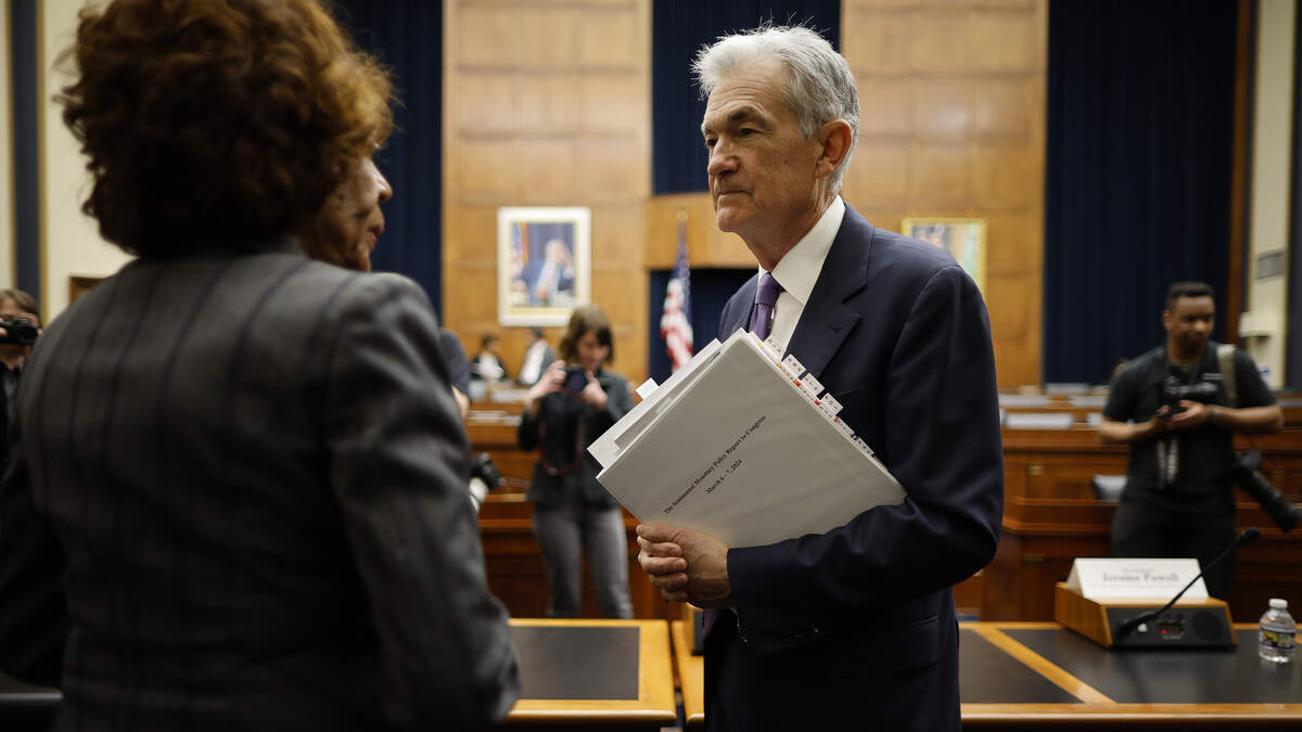 WASHINGTON, DC - MARCH 06: Federal Reserve Bank Chairman Jerome Powell (R) visits with House Financial Services Committee ranking member Rep. Maxine Waters (D-CA) following a hearing in the Rayburn House Office Building on Capitol Hill on March 06, 2024 in Washington, DC. Powell testified that the Fed may begin to lower borrowing costs in 2024 but that economists need more confidence that inflation was under control before changing interest rates. "We believe that our policy rate is likely at its peak for this tightening cycle," he wrote in prepared remarks. (Photo by Chip Somodevilla/Getty Images)Photo: Chip Somodevilla / Getty Images News / Getty Images