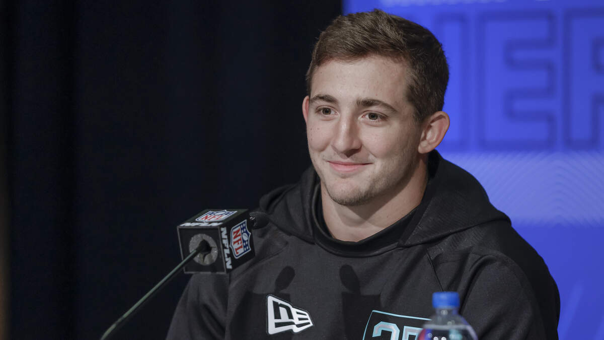 INDIANAPOLIS, IN - MAR 04: Chad Muma #LB27 of the Wyoming speaks to reporters during the NFL Draft Combine at the Indiana Convention Center on March 4, 2022 in Indianapolis, Indiana. (Photo by Michael Hickey/Getty Images)Photo: Getty Images