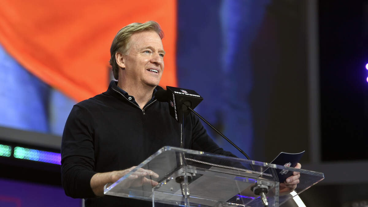LAS VEGAS, NEVADA - APRIL 30: NFL Commission Roger Goodell speaks during round four of the 2022 NFL Draft on April 30, 2022 in Las Vegas, Nevada. (Photo by David Becker/Getty Images)Photo: Getty Images
