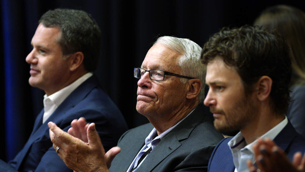 ROGERS, AR - MAY 30: (L-R) Doug McMillon, Walmart president and CEO, Rob Walton, Walmart retired chairman of board, and Walmart board member Steuart Walton listen at the Walmart annual formal business and shareholders meeting on May 30, 2018 in Rogers, Arkansas. Walmart shareholders from around the world can attend meetings throughout the week. (Photo by Rick T. Wilking/Getty Images)Photo: Getty Images