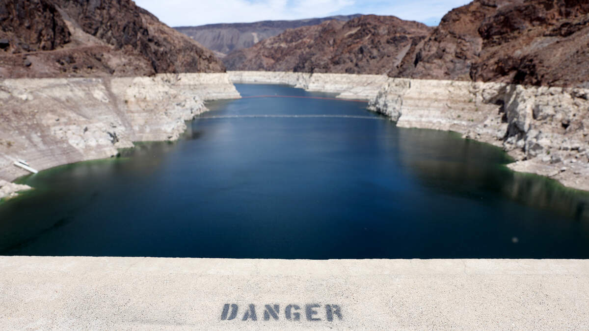 LAKE MEAD NATIONAL RECREATION AREA , NEVADA - MAY 10: A 'Danger' sign is displayed on the Nevada side of the Hoover Dam, with drought-stricken Lake Mead in the background, on May 10, 2022 in the Lake Mead National Recreation Area, Nevada. The U.S. Bureau of Reclamation reported that Lake Mead, North America's largest artificial reservoir, has dropped to about 1,052 feet above sea level, the lowest it's been since being filled in 1937 after the construction of the Hoover Dam. Two sets of human remains have been discovered recently as the lake continues to recede. The declining water levels are a result of a climate change-fueled megadrought coupled with increased water demands in the Southwestern United States. (Photo by Mario Tama/Getty Images)Photo: Getty Images