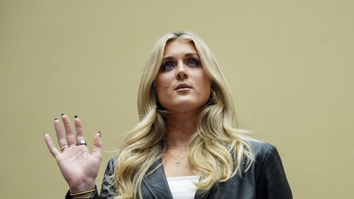 WASHINGTON, DC - DECEMBER 5: Former collegiate swimmer Riley Gaines is sworn in during a House Oversight Subcommittee on Health Care and Financial Services hearing on Capitol Hill December 5, 2023 in Washington, DC. The hearing focused on the Biden administration's proposed rule changes to Title IX to redefine the definition of sexual discrimination to include gender identity. (Photo by Drew Angerer/Getty Images)Photo: Drew Angerer / Getty Images News / Getty Images