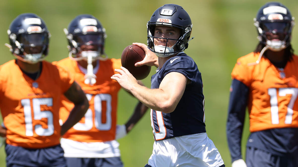 ENGLEWOOD, COLORADO - JUNE 12: Bo Nix #10 of the Denver Broncos throws during Denver Broncos OTA Offseason Workouts at Centura Health Training Center on June 12, 2024 in Englewood, Colorado. (Photo by Matthew Stockman/Getty Images)Photo: Matthew Stockman / Getty Images Sport / Getty Images