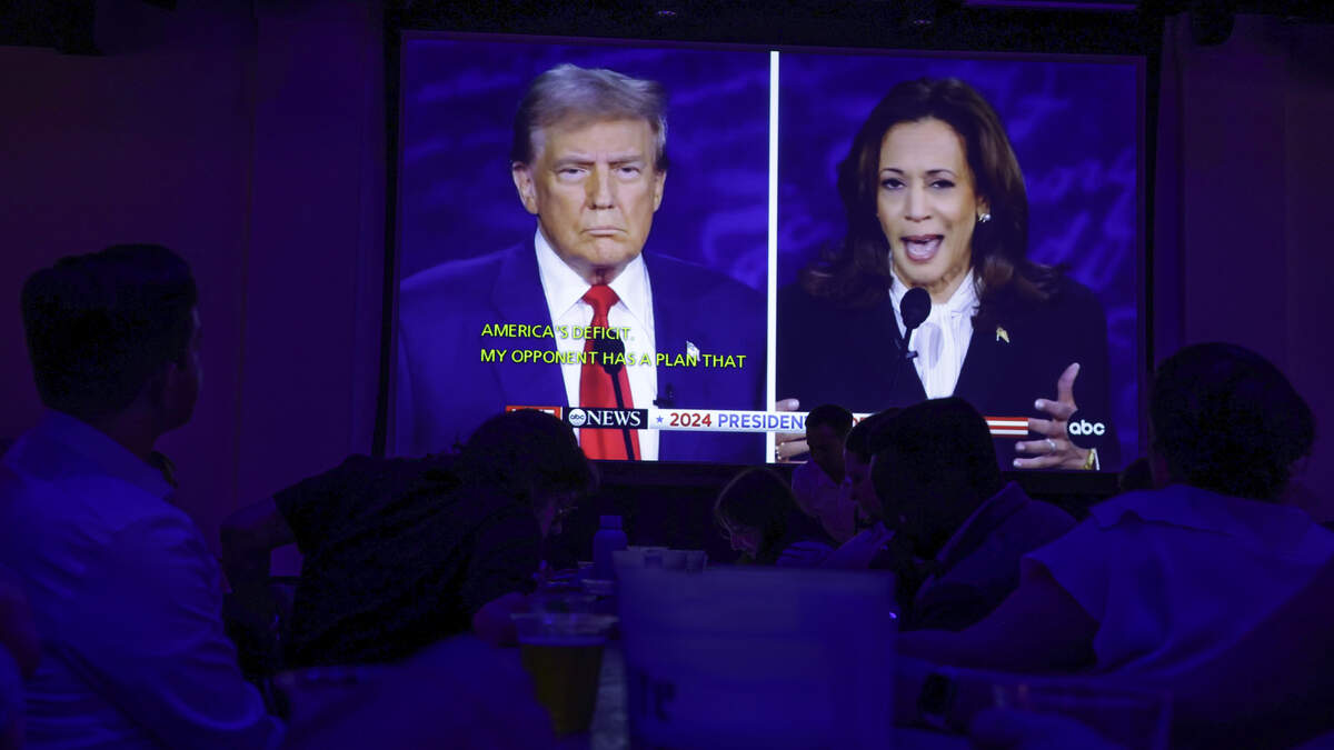 WASHINGTON, DC - SEPTEMBER 10: People watch the presidential debate during a debate watch party at Penn Social on September 10, 2024 in Washington, DC. Democratic presidential nominee, U.S. Vice President Kamala Harris and Republican presidential nominee, former President Donald Trump face off in their first debate Tuesday evening at The National Constitution Center in Philadelphia, Pennsylvania. (Photo by Alex Wong/Getty Images)Photo: Alex Wong / Getty Images News / Getty Images