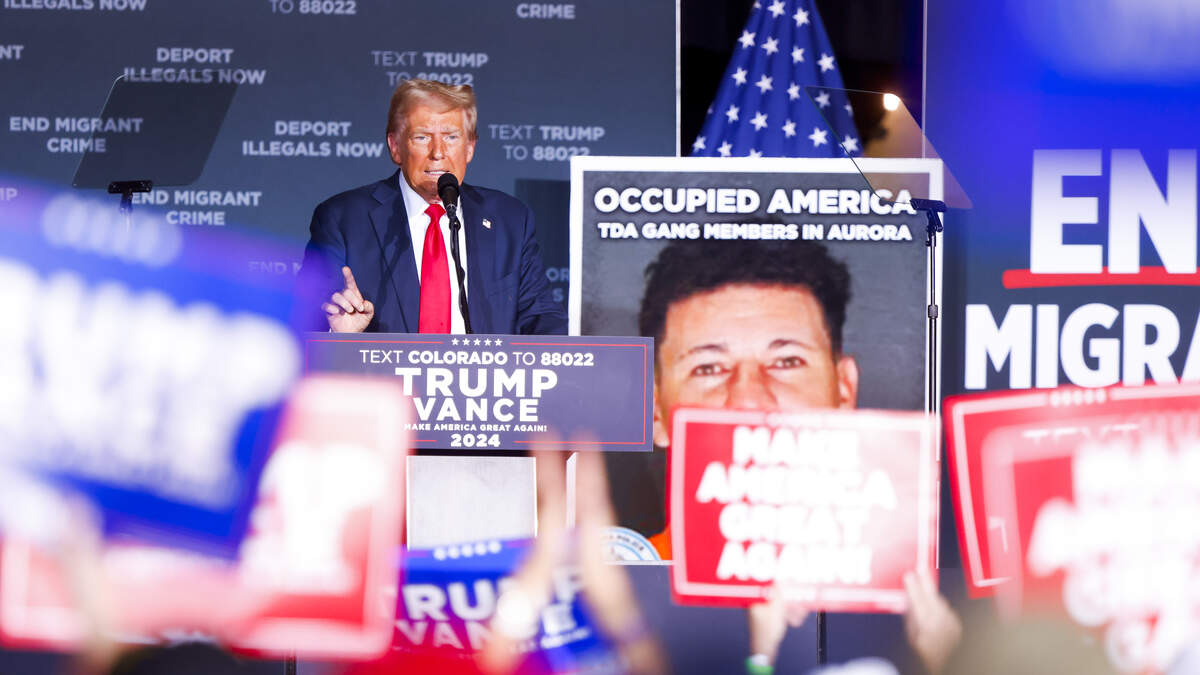 AURORA, COLORADO - OCTOBER 11: Republican presidential nominee, former U.S. President Donald Trump, speaks at a rally at the Gaylord Rockies Resort and Convention Center on October 11, 2024 in Aurora, Colorado. Trump is campaigning in key states ahead of the November 5th presidential election. (Photo by Michael Ciaglo/Getty Images)Photo: Michael Ciaglo / Getty Images News / Getty Images