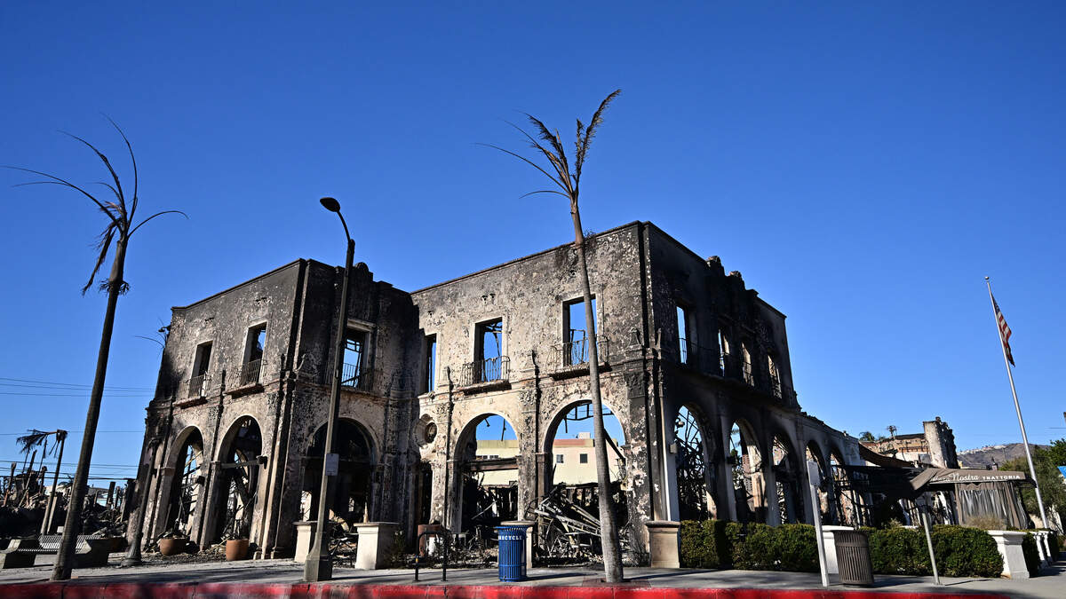 A building that once housed restaurants and coffee shops among other businesses is seen destroyed by the Palisades Fire in Pacific Palisades, California, on January 12, 2025. US officials warned "dangerous and strong" winds were set to push deadly wildfires further through Los Angeles residential areas January 12 as firefighters struggled to make progress against the flames. At least 24 people have been confirmed dead from blazes that have ripped through the city, reducing whole neighborhoods to ashes and leaving thousands without homes. (Photo by Frederic J. BROWN / AFP) (Photo by FREDERIC J. BROWN/AFP via Getty Images)Photo: FREDERIC J. BROWN / AFP / Getty Images