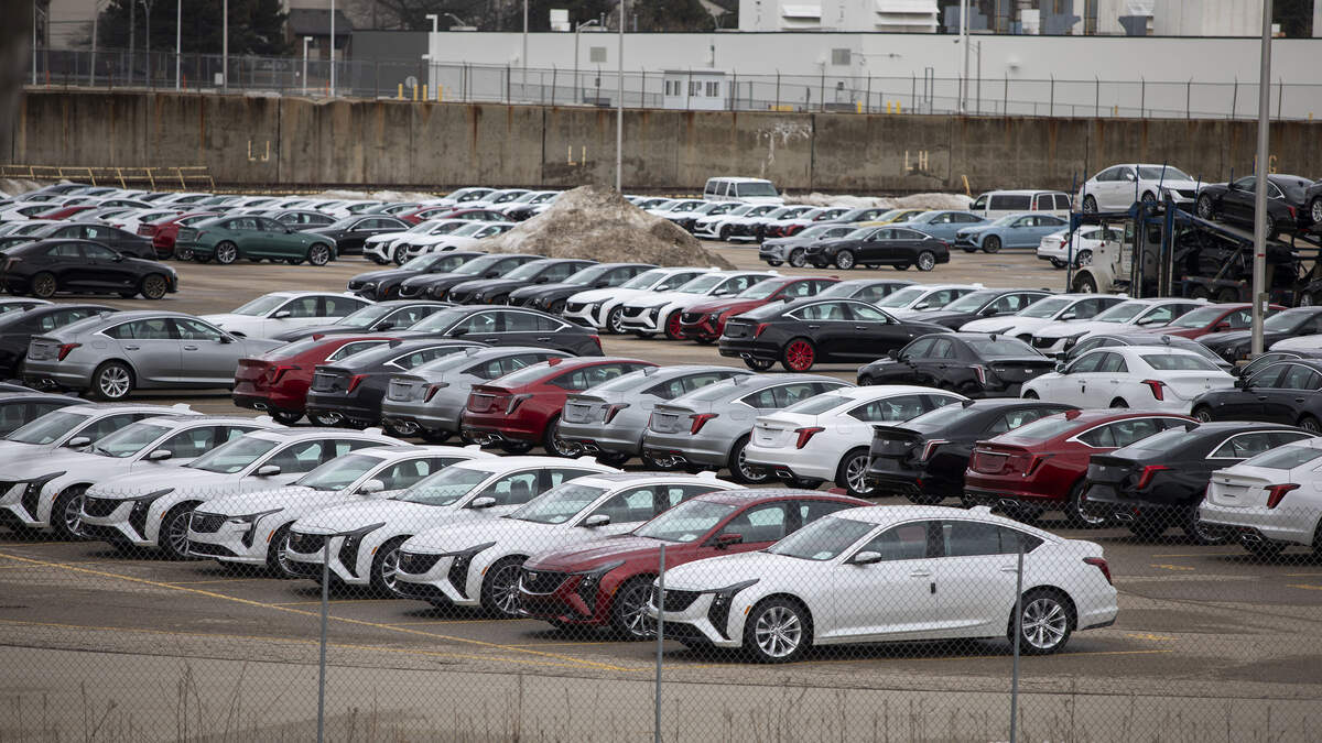 LANSING MICHIGAN - MARCH 4: New General Motors vehicles are parked at the GM Lansing Grand River Assembly plant as the first day of President Donald Trump's 25 percent tariffs on goods from Canada and Mexico goes into effect March 4, 2025 in Lansing, Michigan. President Trump is also adding 10% tariff on imports from China, bringing the tariffs on that country's goods to 20%. (Photo by Bill Pugliano/Getty Images)Photo: Bill Pugliano / Getty Images News / Getty Images