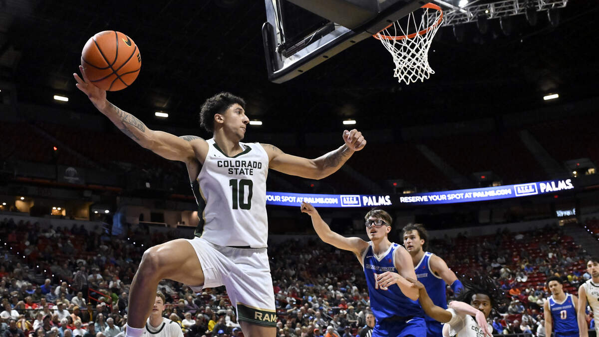 LAS VEGAS, NEVADA - MARCH 15: Nique Clifford #10 of the Colorado State Rams looks to pass the ball against the Boise State Broncos during the second half of the championship game of the Mountain West Conference men’s basketball tournament at the Thomas & Mack Center on March 15, 2025 in Las Vegas, Nevada. The Rams defeated the Broncos 69-56. (Photo by David Becker/Getty Images)Photo: David Becker / Getty Images Sport / Getty Images