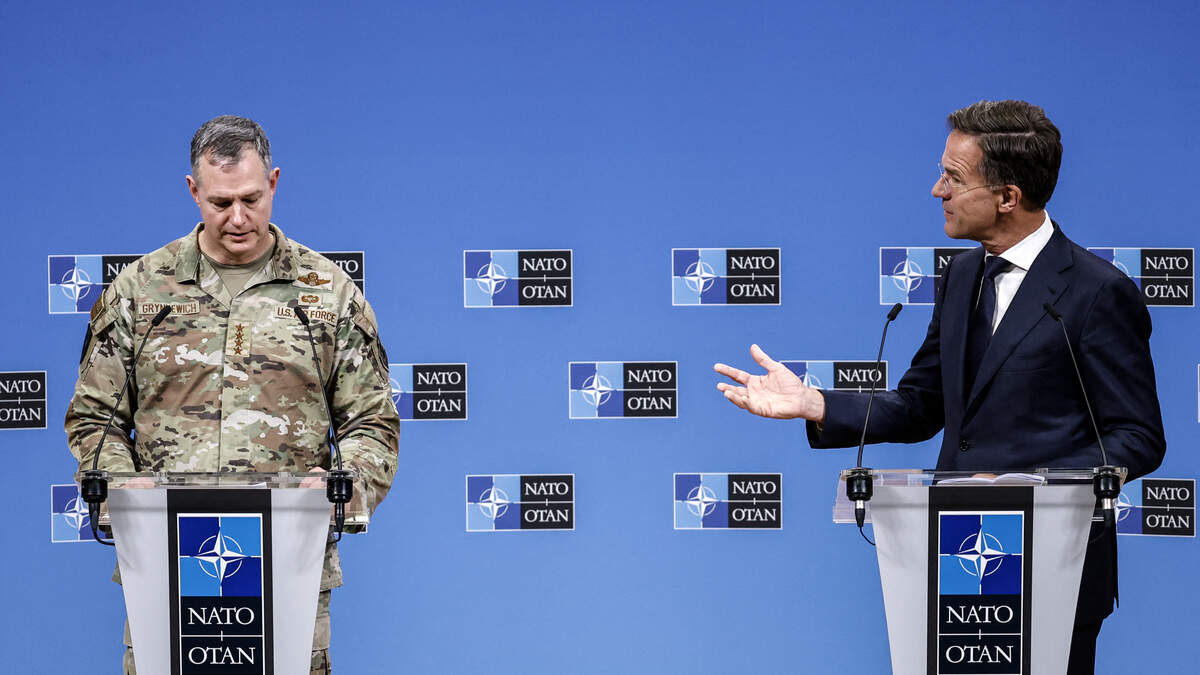 NATO Secretary General Mark Rutte (R) and NATO Supreme Allied Commander Europe (SACEUR) General Alexus G. Grynkewich (L) speak during a joint press conference on the violation of Polish airspace by Russian drones, at the NATO headquarters in Brussels on September 12, 2025. NATO will strengthen the defence of its eastern flank, following the intrusion of Russian drones into Polish airspace this week, announced NATO Secretary on September 12. The Alliance will launch an operation to "further strengthen our posture along our eastern flank," he stated. (Photo by Simon Wohlfahrt / AFP) (Photo by SIMON WOHLFAHRT/AFP via Getty Images) Photo: SIMON WOHLFAHRT / AFP / Getty Images