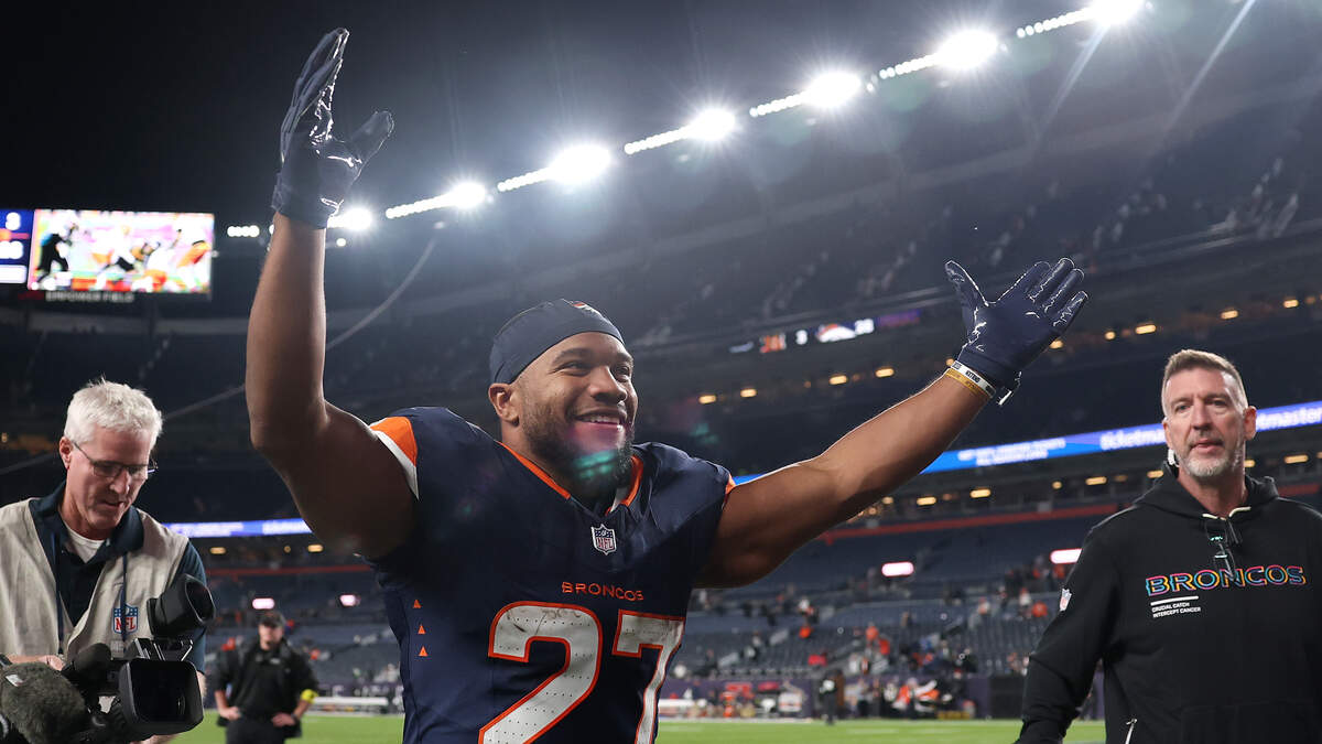DENVER, COLORADO - SEPTEMBER 29: J.K. Dobbins #27 of the Denver Broncos reacts after the game against the Cincinnati Bengals at Empower Field At Mile High on September 29, 2025 in Denver, Colorado. (Photo by Matthew Stockman/Getty Images)Photo: Matthew Stockman / Getty Images Sport / Getty Images