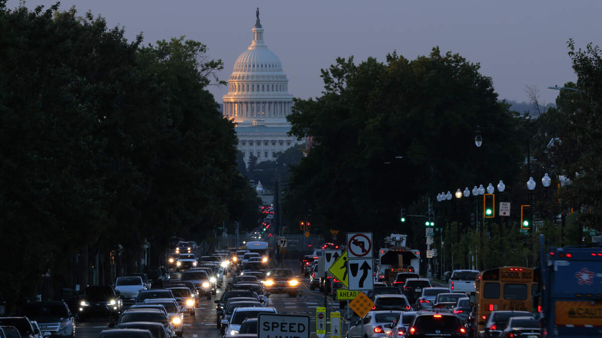 WASHINGTON, DC - OCTOBER 01: The U.S. Capitol stands in the distance as morning traffic moves along North Capitol Street Northwest on October 01, 2025 in Washington, DC. The government shut down early Wednesday after Congress failed to reach a funding deal. ( (Photo by Chip Somodevilla/Getty Images)Photo: Chip Somodevilla / Getty Images News / Getty Images