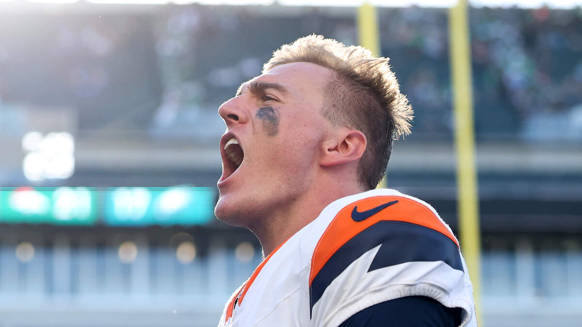 PHILADELPHIA, PENNSYLVANIA - OCTOBER 05: Bo Nix #10 of the Denver Broncos celebrates after the 21-17 win against the Philadelphia Eagles in the game at Lincoln Financial Field on October 05, 2025 in Philadelphia, Pennsylvania. (Photo by Emilee Chinn/Getty Images)Photo: Emilee Chinn / Getty Images Sport / Getty Images