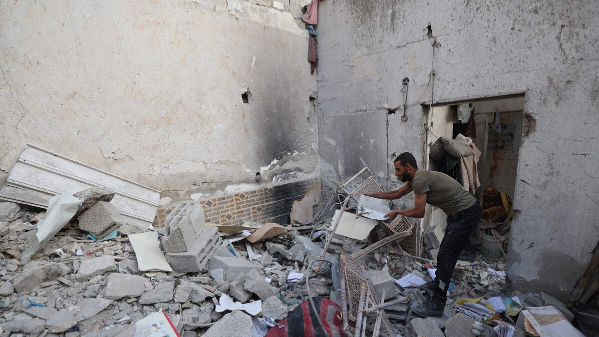 A Palestinian man inspects the damage around his home after an Israeli strike targeted the previous day the Bureij refugee camp in the central Gaza Strip on October 20, 2025. Israel resumed on October 19 airstrikes on the Palestinian territory, after accusing the Palestinian militant group Hamas of breaking a ceasefire and hostage release deal brokered last week. (Photo by Eyad BABA / AFP) (Photo by EYAD BABA/AFP via Getty Images) Photo: EYAD BABA / AFP / Getty Images