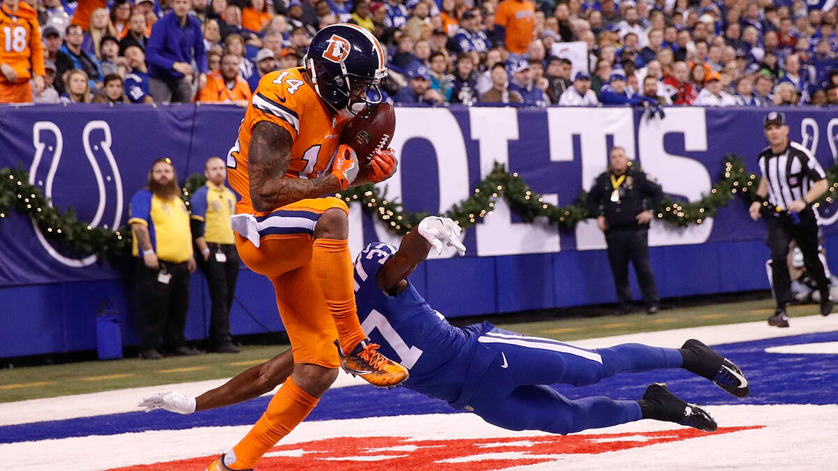 Denver Broncos wide receiver Cody Latimer hauls in a 22-yard touchdown pass in the third quarter of Denver's 25-13 win over the Indianapolis Colts. (Photo by Joe Robbins/Getty Images)