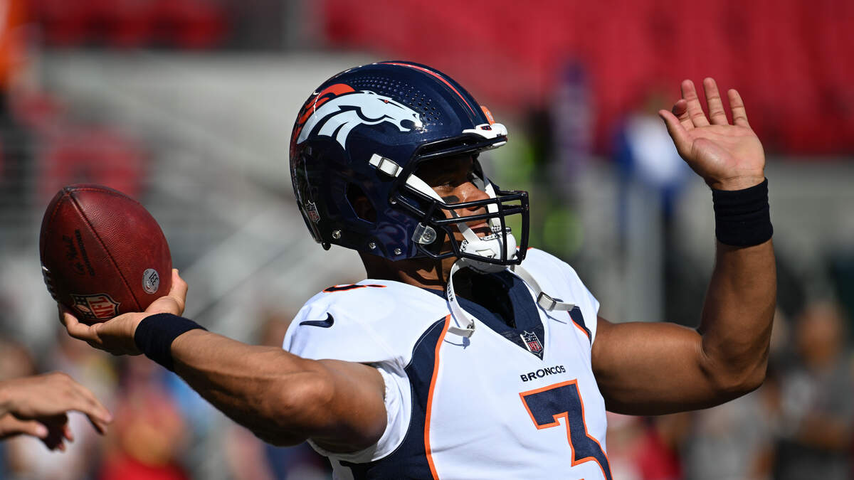 SANTA CLARA, CALIFORNIA - AUGUST 19: Russell Wilson #3 of the Denver Broncos warms up before playing the San Francisco 49ers in a preseason game at Levi's Stadium on August 19, 2023 in Santa Clara, California. (Photo by Loren Elliott/Getty Images)Photo: Loren Elliott / Getty Images Sport / Getty Images