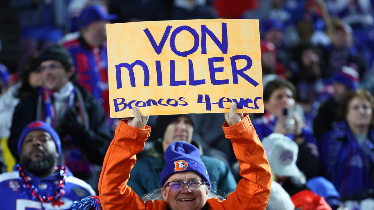 ORCHARD PARK, NEW YORK - NOVEMBER 13: A fan holds up a sign prior to a game between the Denver Broncos and Buffalo Bills at Highmark Stadium on November 13, 2023 in Orchard Park, New York. (Photo by Timothy T Ludwig/Getty Images)Photo: Timothy T Ludwig / Getty Images Sport / Getty Images