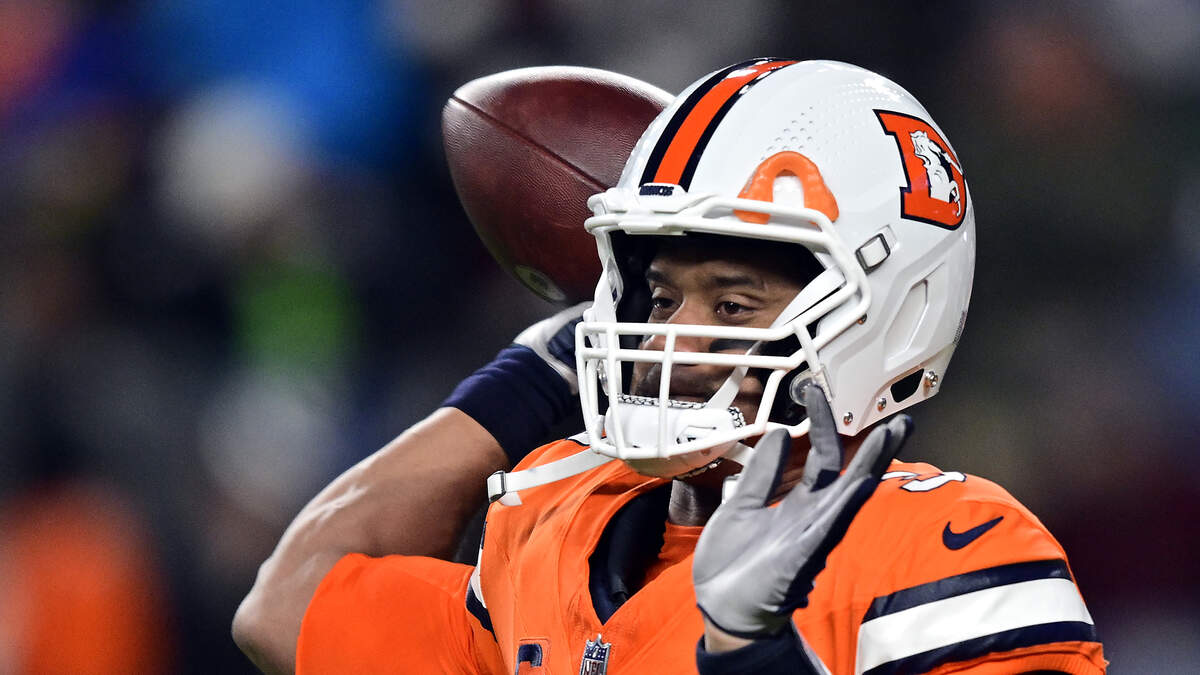 DENVER, COLORADO - DECEMBER 24: Quarterback Russell Wilson #3 of the Denver Broncos warms up prior to the game against the New England Patriots at Empower Field At Mile High on December 24, 2023 in Denver, Colorado. (Photo by Dustin Bradford/Getty Images)Photo: Dustin Bradford / Getty Images Sport / Getty Images