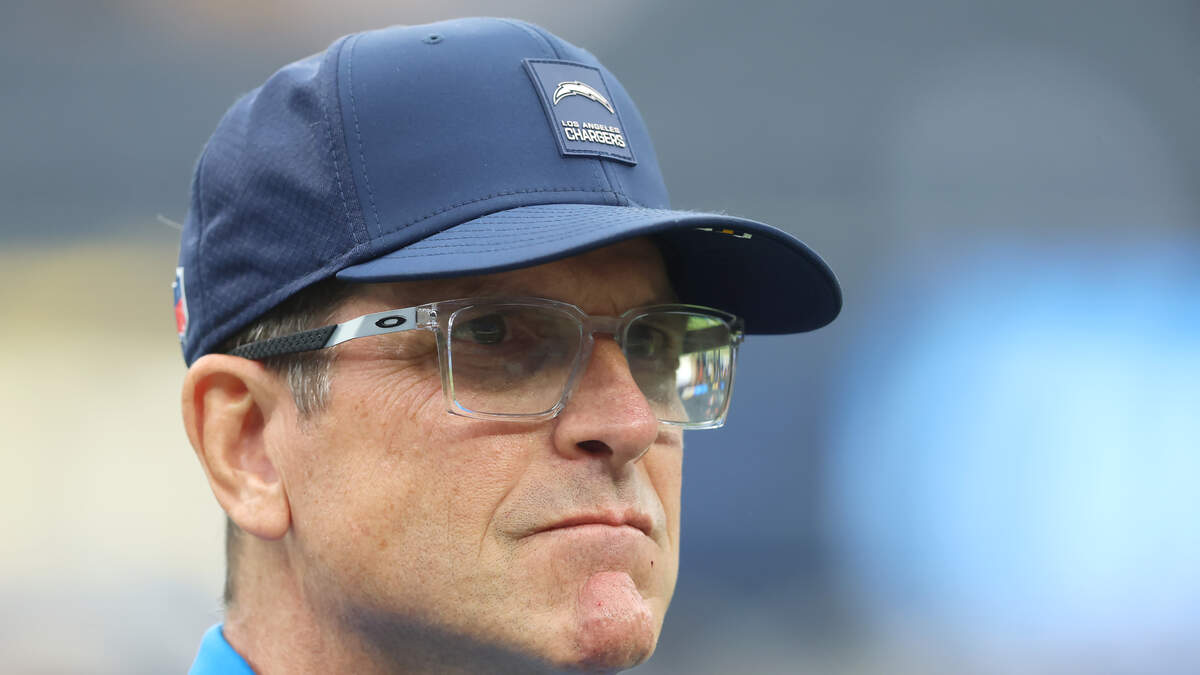 INGLEWOOD, CALIFORNIA - SEPTEMBER 21: Head coach Jim Harbaugh of the Los Angeles Chargers looks on before the game against the Denver Broncos at SoFi Stadium on September 21, 2025 in Inglewood, California. (Photo by Sean M. Haffey/Getty Images)Photo: Sean M. Haffey / Getty Images Sport / Getty Images
